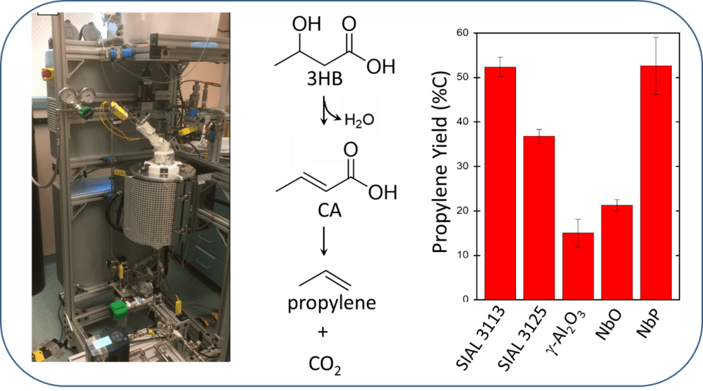 J102. S. Leow, A.J. Koehler, L.E. Cronmiller, X. Huo, G.D. Lahti, Y. Li, G.R. Hafenstine, D.R. Vardon, and T.J. Strathmann. (2021). Vapor-phase conversion of aqueous 3-hydroxybutyric acid and crotonic acid to propylene over solid acid catalysts. Catalysis Science & Technology. 11, 6866-6876. DOI: 10.1039/d1cy01152a
