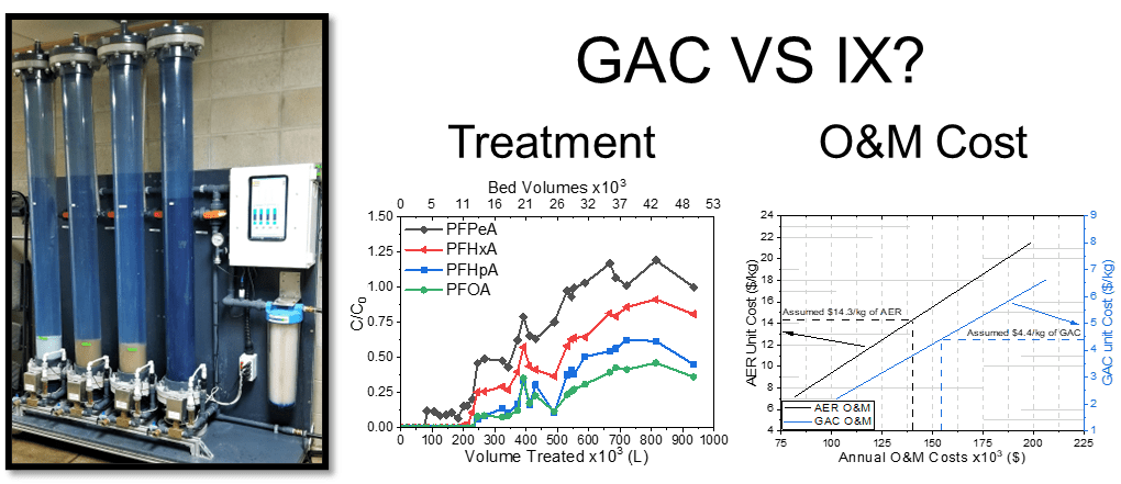 J108. C.J. Liu, C.C. Murray, R.E. Marshall, T.J. Strathmann, and C. Bellona. (2022) Removal of Per- and Polyfluoroalkyl Substances from Contaminated Groundwater by Granular Activated Carbon and Anion Exchange Resins: A Pilot-Scale Comparative Assessment. Environmental Science: Water Research and Technology. 8, 2245-2253. DOI: 10.1039/d2ew00080f