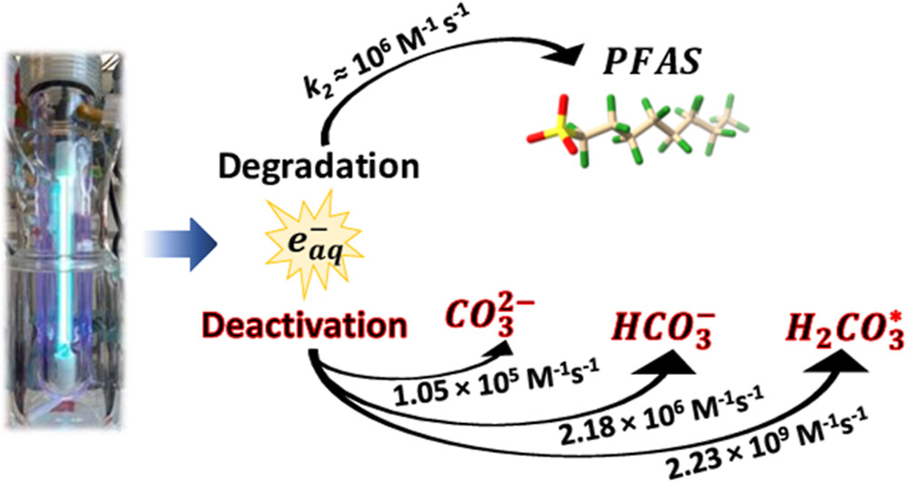 J117. C.K. Amador, H. Cavalli, R. Tenorio, H. Tetu, C.P. Higgins, S. Vyas, and T.J. Strathmann (2023). Influence of Carbonate Speciation on Hydrated Electron Treatment Processes. Environmental Science & Technology. 57, 7849-7857. https://doi.org/10.1021/acs.est.2c09451